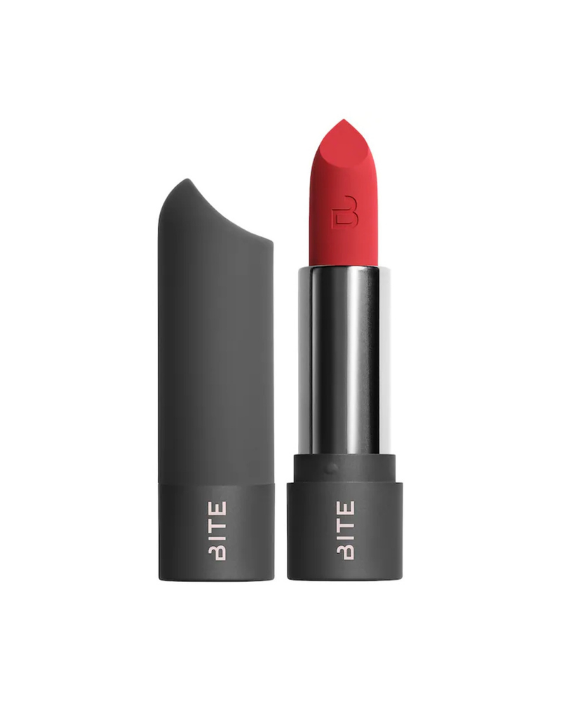 Bite Dazzler'southward motto is that clean doesn't have to hateful boring. Their lip products bring the boldness and intense colour, without harmful or sensitizing ingredients. Superfoods replace harmful chemicals in their formulas, and so you don't take to cede anything for your beauty look. Licensed toxicologists review all the products that Bite puts out and test them for safety, allergens, and efficiency. When your makeup creative person has a lab coat on, you know the dedication is real.